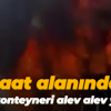 İnşaat alanındaki işçi konteyneri alev alev yandı