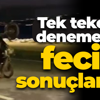 Edinilen bilgiye göre, Ereğli Sahili'nde bir genç, motosikletiyle seyir halindeyken ön tekeri kaldırarak ilerlemeye çalıştı. Ancak dengesini kaybederek motosikletten düşen genç, asfalt zemine savruldu. Olay anı çevredeki bir kişi tarafından cep telefonuyla saniye saniye kaydedildi.