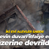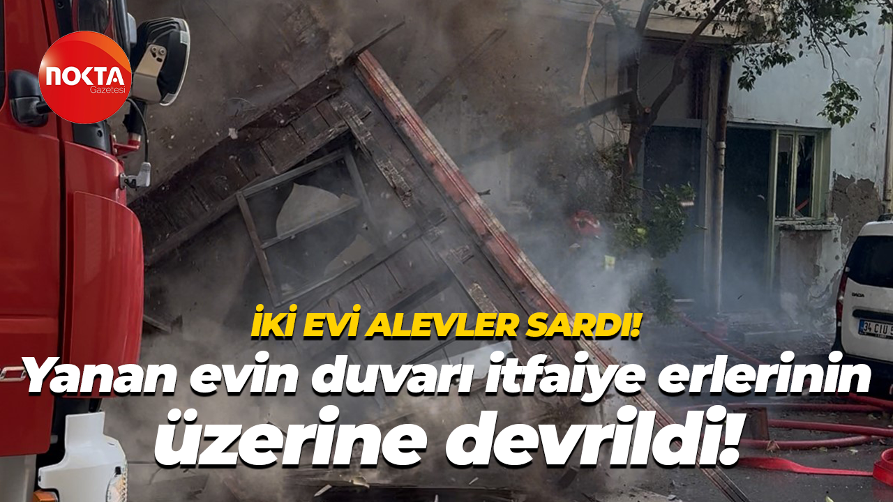İki evi alevler sardı! Yanan evin duvarı itfaiye erlerinin üzerine devrildi!