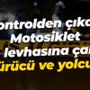 Kontrolden çıkan Motosiklet yön levhasına çarptı! Sürücü ve yolcu...