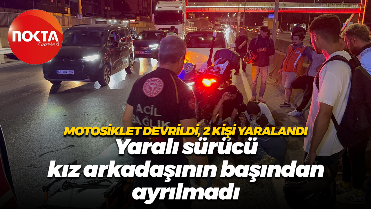 Motosiklet devrildi, 2 kişi yaralandı... Yaralı sürücü kız arkadaşının başından ayrılmadı