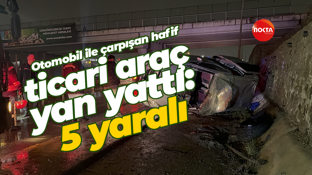 Kocaeli'de otomobil ile çarpışan hafif ticari araç yan yattı. Kazada 5 kişi yaralandı.