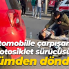 Otomobille çarpışan motosiklet sürücüsü ölümden döndü