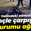 Seyir halindeki motosikletli vinçle çarpıştı! Durumu ağır!