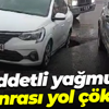 Kocaeli'de etkili olan yağış sırasında caddenin bir bölümünde göçtü. Bir otomobilin tekerleği ise göçüğün içinde kaldı