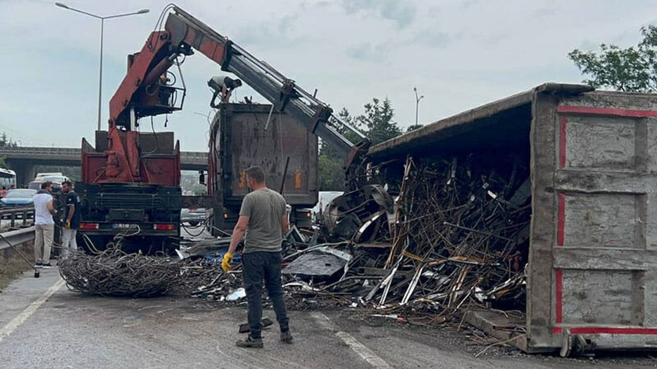 Kocaeli'de devrilen hurda yüklü tırın sürücüsü tedavi altına alındı.
