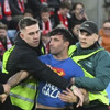 Olay sonrasında güvenlik görevlileri, Norveçli taraftarı saha dışına çıkarttı.