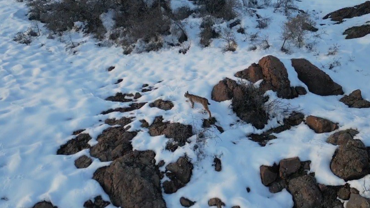 Nesli tükenme tehlikesi altında olan vaşak, Bayburt'un Kırkpınar köyünde görüldü. İlk defa vaşak gören Bayburtlu vatandaş, karlı arazi üzerinde dolanan vaşağı cep telefonu kamerasıyla görüntüledi.