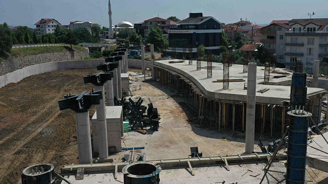 Kocaeli Büyükşehir Belediyesi tarafından Gölcük'te inşa edilen yeni terminal binasında çalışmalar hızla ilerliyor.