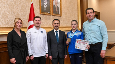 Kocaeli'de gerçekleştirilen 2025 Türkiye Çocuklar Karate Şampiyonasında birinci olan Melis Uran, babası Hüseyin Yavuz Uran, annesi Merve Uran ve KBB Kağıtspor Kulübü Antrenörü Toygun Akyıldız ile birlikte Vali İlhami Aktaş'ı ziyaret etti.
