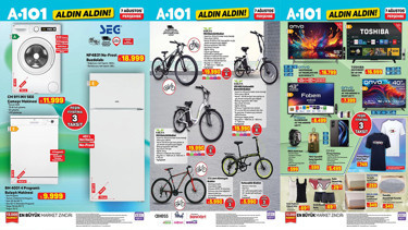 7 Ağustos Perşembe gününe özel hazırlanan A101 ürünleri yenilendi. Her hafta perşembe günleri geçerli olan A101 perşembe indiriminde volta katlanabilir elektrikli bisiklet, televizyon, çamaşır makinesi dikkat çekti. İşte 7 Ağustos Perşembe günü reyonlara gelecek A101 aktüel ürünleri..