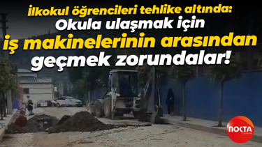 Karamürsel’de bir türlü bitmeyen altyapı çalışması ilkokul öğrencileri için büyük tehlike oluşturuyor. Öğrenciler okula gitmek için iş makinelerin arasından geçmek zorunda kalıyor.