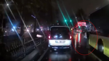 Beşiktaş Barbaros Bulvarı'nda arızalanan bir İETT Özel Halk Otobüsü, arıza nedeniyle geri kaymaya başladı.