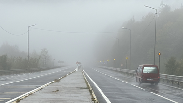 D-100 kara yolunun Bolu Dağı geçişinde sisli hava etkisini gösteriyor.
