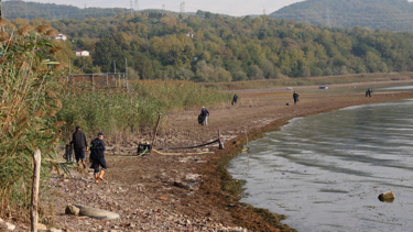 Sapanca Gölü'nün su seviyesinin düşmesiyle birlikte ortaya çıkan atıklar, Kartepe Belediyesi ekipleri tarafından temizlendi.