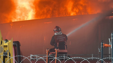 Sakarya'nın Adapazarı ilçesinde traktör bayisinin deposunda büyük çapta yangın çıktı. Ekipler yangını söndürmek için çalışma yapıyor.