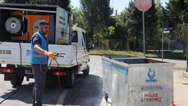 Çayırova'de ekipler, ilçede bulunan çöp konteynerlerini yerinde yıkayarak, hem kötü koku oluşumunun önüne geçiyor hem de çevre temizliğini gerçekleştiriyor.