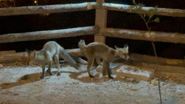 Yozgat'ta yoğun kar yağışı sonrası yiyecek bulmakta zorlanan tilkiler, kent merkezine inerek okul bahçesindeki kedi mamalarını yedi.