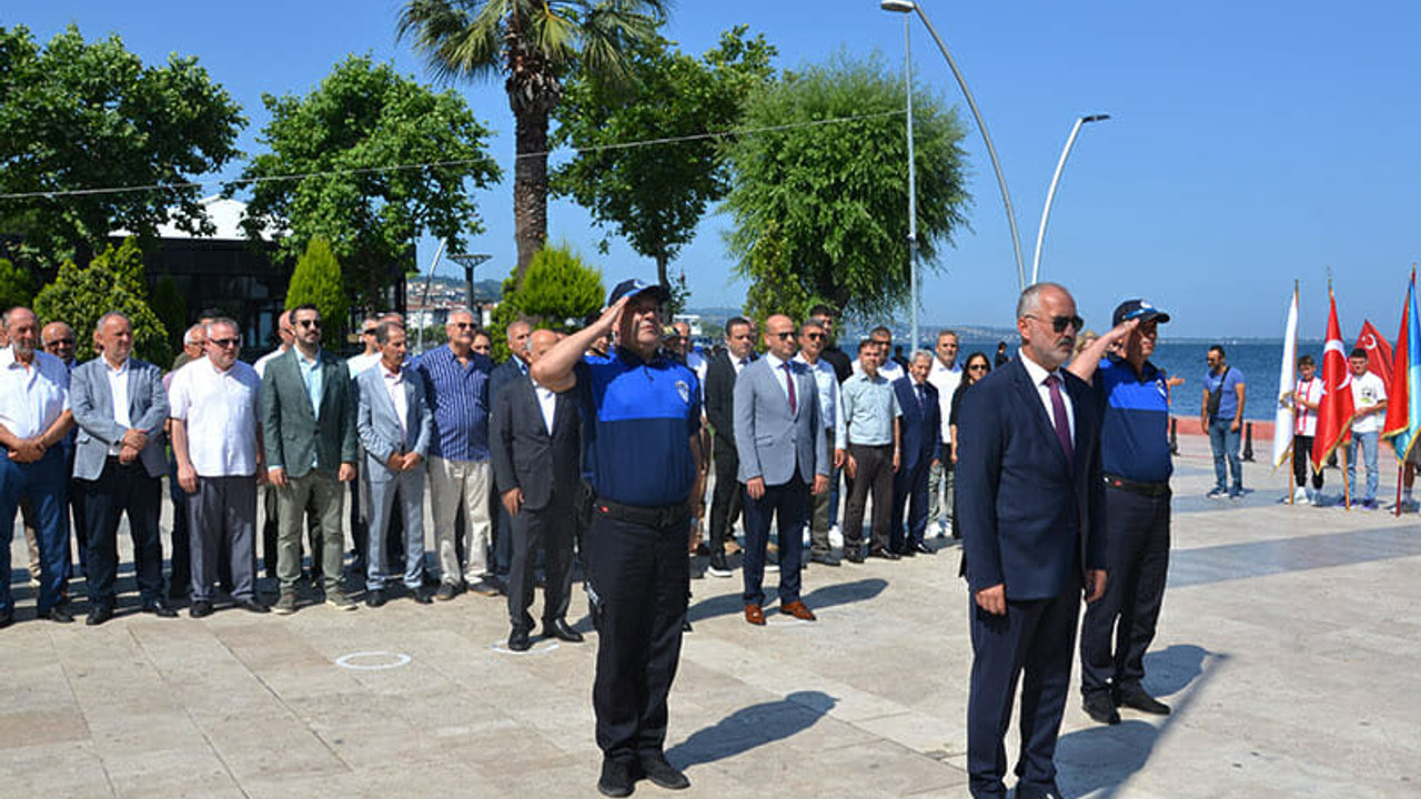Karamürsel Alp'in kabri başında Kur'an-ı Kerim tilaveti ve dualarla başlayan tören, Belediye Başkanı İsmail Yıldırım'ın sahildeki Atatürk anıtına çelenk bırakması, saygı duruşu ve İstiklal Marşı ile devam etti.