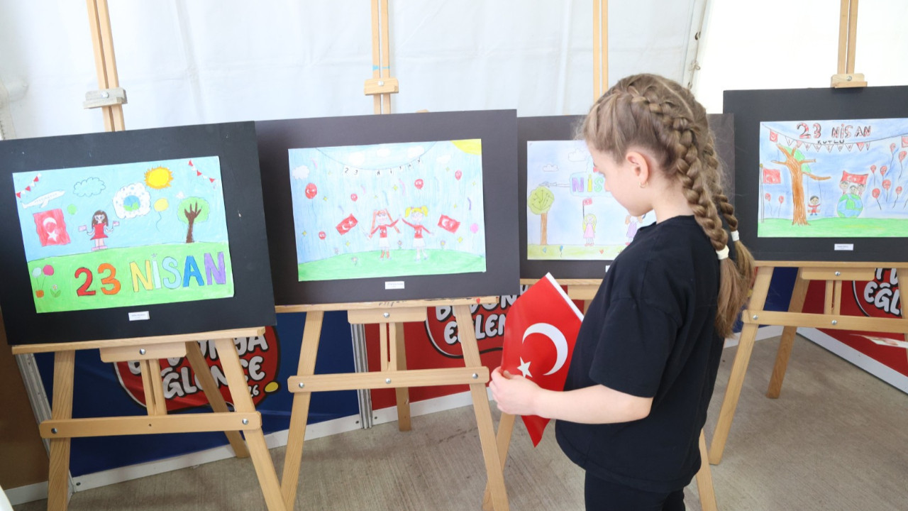 Kocaeli Büyükşehir Belediyesi’nin 23 Nisan Şenliği, sanat kurslarının da katılımıyla renklenmeye devam ediyor. Şenlik kapsamında kurulan sergi alanında öğrencilerin hazırladığı eserler ziyaretçilerin büyük ilgisini çekti.