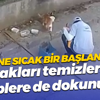 Güne sıcak bir başlangıç... Sokakları temizlerken kalplere de dokunuyor