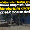 İlkokul öğrencileri tehlike altında: Okula ulaşmak için iş makinelerinin arasından geçmek zorundalar