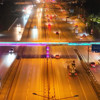 Kocaeli Büyükşehir Belediyesi’nin ev sahipliğinde düzenlenen Kocaeli Bilişim Fuarı kentte görsel bir şölen oluşturdu. Büyükşehir ekipleri, köprü ve üst geçitleri fuarın renkleri olan turkuaz ve mor ışıklarla aydınlattı.
