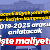 Sonrasında ise 1 Nisan 2019 ile 31 Mart 2025 arasında yapılan faaliyet ve yatırımlar için vatandaşlara ulaşmaya yönelik bir iletişim kampanyası düzenlenecek. İletişim kampanyası gereğince slogan, ana metin, alt metinler üretilerek idareye sunulacak. Elde edilen tüm veri ve metinler görsel bir kampanya için de uyarlanacak. Kampanya açık hava mecraları billboard, clp, megalight, totem, köprü, vinil pankart tasarımları, cephe giydirmeleri için yapılacak tasarımlar, elektrik direkleri; Facebook, Twitter ve İnstagram’dan sürdürülecek.