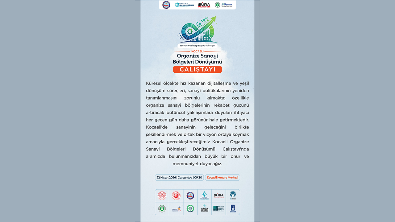 Kocaeli Büyükşehir Belediyesi tarafından kurulan ŞÛRA Kent Politikaları ve Araştırmaları Merkezi’nin Kocaeli Üniversitesi işbirliğinde düzenlediği “Kocaeli’de Organize Sanayi Bölgeleri Dönüşümü Çalıştayı” 22 Nisan Çarşamba günü Kocaeli Kongre Merkezi’nde gerçekleştirilecek. Kocaeli’de faaliyet gösteren 14 Organize Sanayi Bölgesi’nin karşı karşıya olduğu yapısal sorunların kapsamlı biçimde ele alınacağı çalıştayda; altyapıdan finansmana, dijitalleşmeden çevresel sürdürülebilirliğe kadar geniş bir yelpazede değerlendirmeler yapılacak.