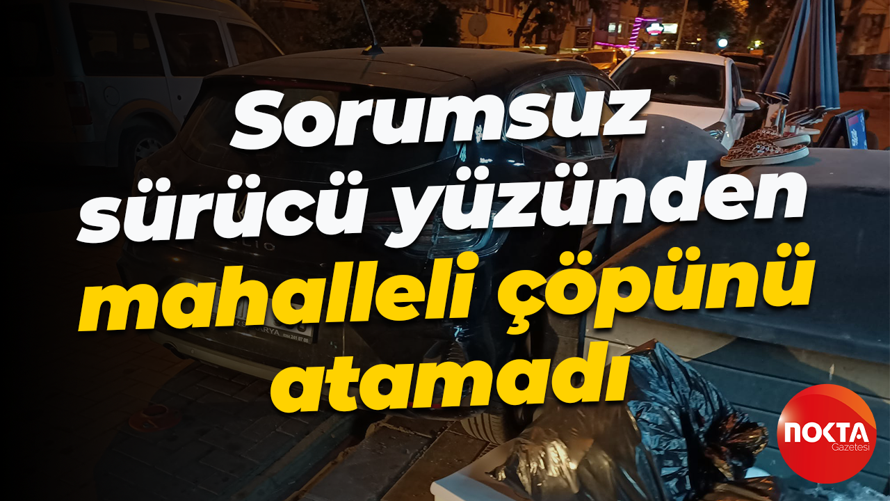 Sorumsuz sürücü mahalleliyi ve esnafı zor durumda bıraktı. Araç, çöp konteynırının önünde parklayınca mahalleli ve esnaf çöpünü atamayınca ortaya böyle bir manzara çıktı.