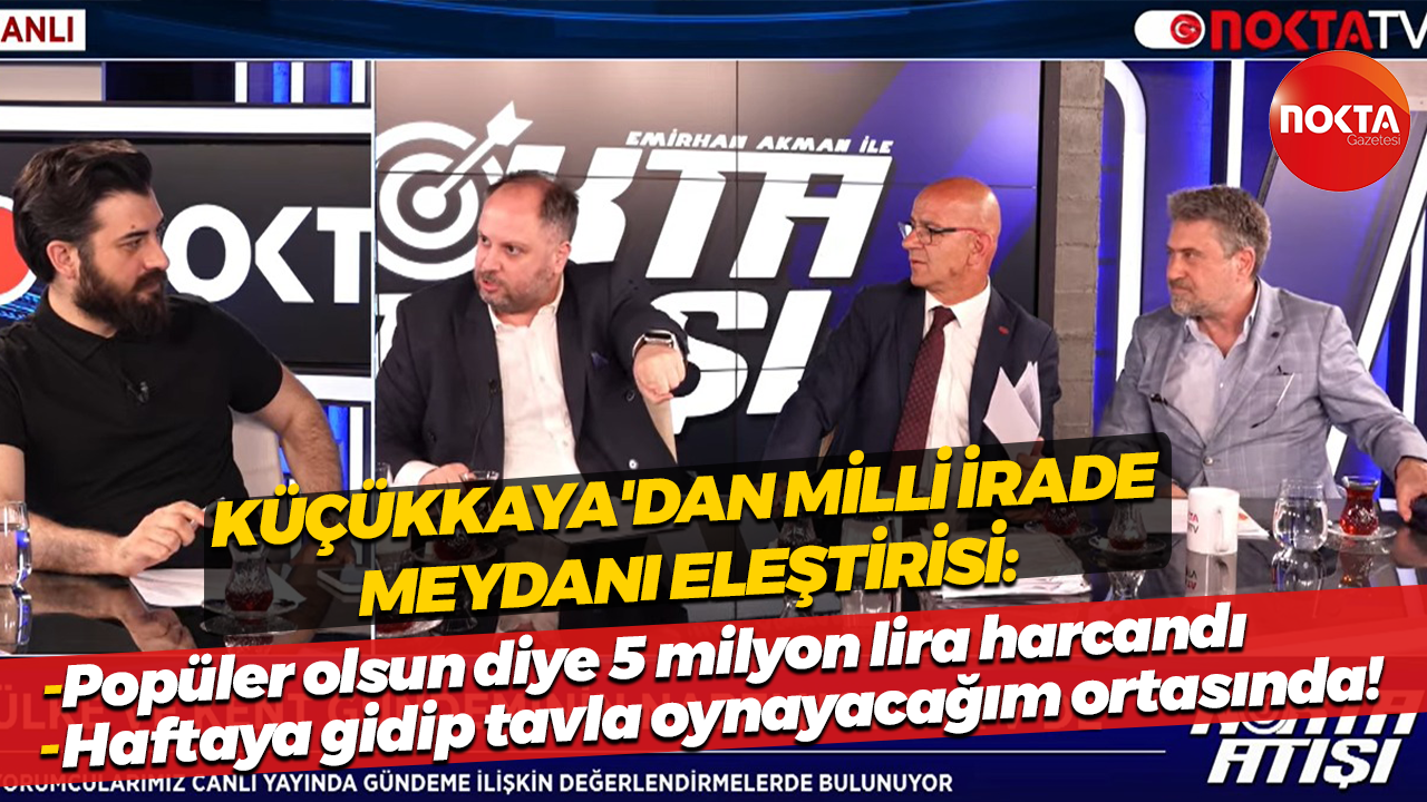 Nokta Atışı programında konuşan Mehmet Ümit Küçükkaya Milli İrade Meydanı’nda düzenlenen 19 Mayıs etkinliğini eleştirdi. Küçükkaya, “O alan, mekan popüler olsun diye 5 milyon 200 bin lira para harcandı tasarruf tedbirlerinin olduğu bir dönemde.” dedi.