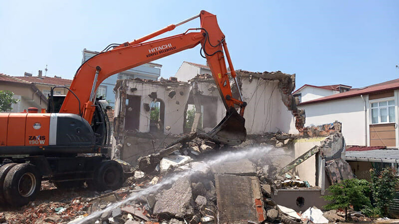 Körfez'de bulunan, can güvenliğini tehlikeye sokan metruk binaların yıkımı gerçekleştiriliyor