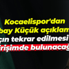 Kocaelispor'dan Zorbay Küçük açıklaması: Tekrar edilmesi için girişimde bulunacağız