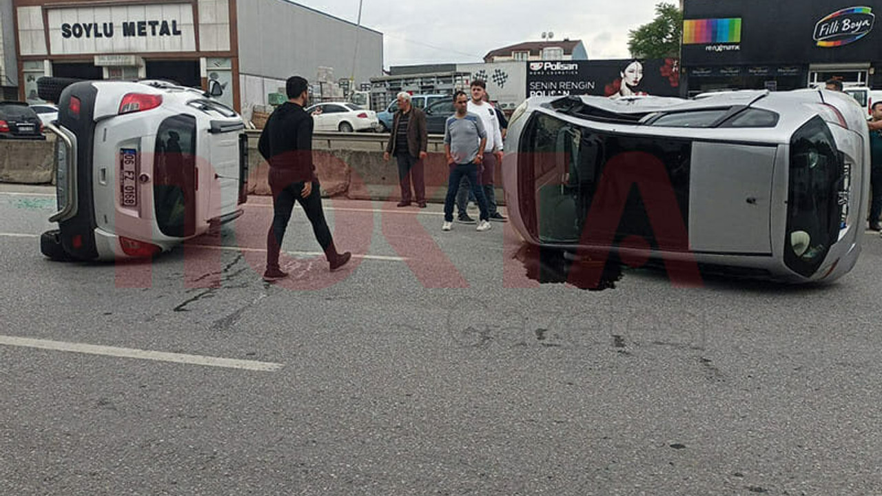 Tırla çarpışan otomobiller takla attı!