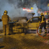 Bir sürücü park halindeki otomobilini çalıştırdığı sırada araçta bir anda yangın çıktı. Sürücü son anda kendini araçtan dışarı atarken, mahalleli yangını söndürmek için kovalarla su taşıdı.