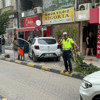 Hatay’da sürücüsünün dalgınlıkla fren yerine gaza bastığı otomobil, bir iş yerine metreler kala durdu.