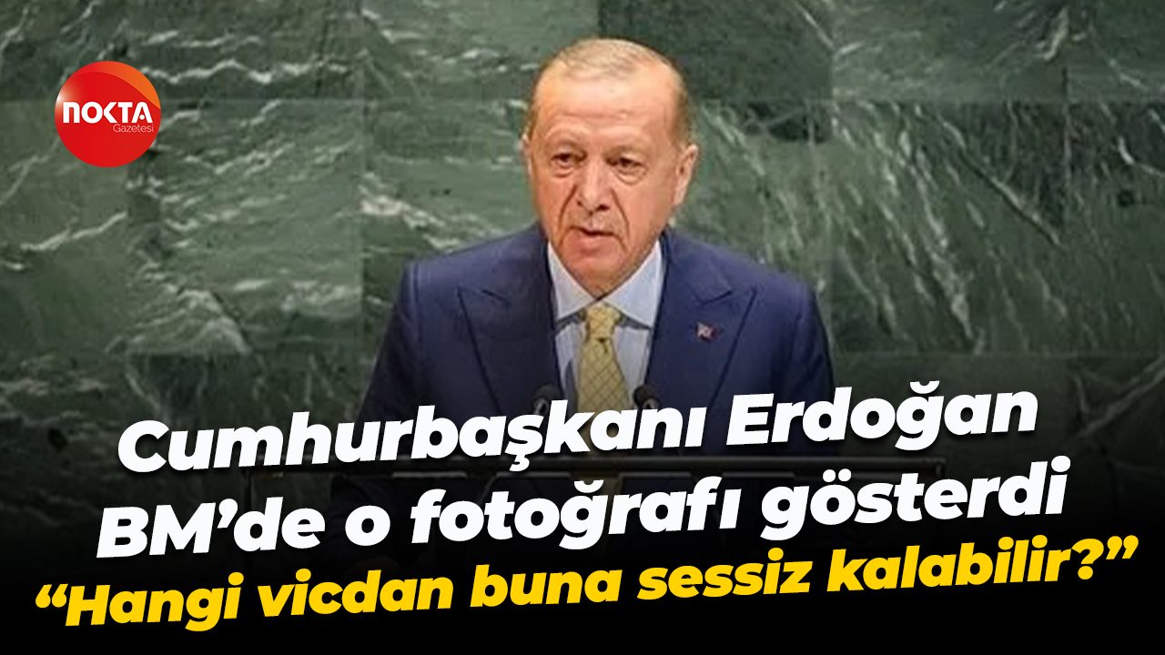 Cumhurbaşkanı Erdoğan BM’de o fotoğrafı gösterdi; “Hangi vicdan buna sessiz kalabilir?”