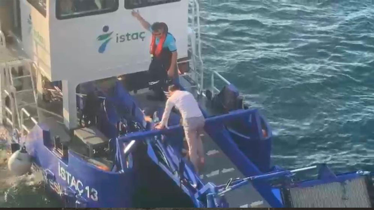 İstanbul'da, Galata Köprüsü'nden denize düşerek boğulma tehlikesi geçiren kadını, bir vatandaş köprüden atlayarak kurtardı. Ekiplerin müdahalesiyle kadın sudan çıkarılırken, kurtaran adamın ise kadının başında beklediği anlar kameraya yansıdı.