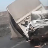 Eskişehir'de kontrolden çıkan kamyon refüje çarptı.