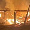 Çıkan yangında iki katlı ev ile bir ahır, tamamen yanarak kullanılamaz hale geldi.