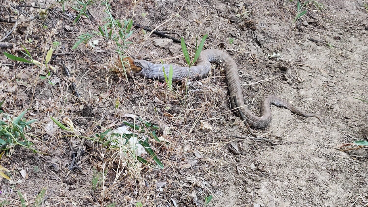 Tunceli’de sincap yutan koca engerek görüntülendi.