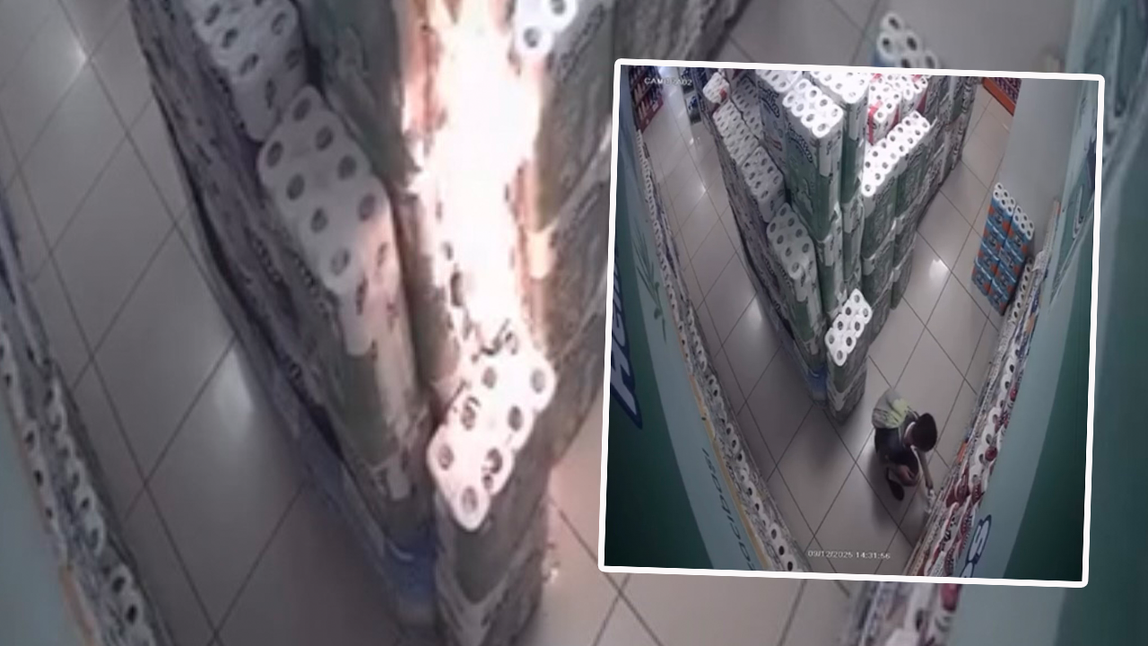 Bursa'da 10 yaşlarındaki bir çocuk, markette raftan kopardığı etiketi çakmakla yakıp peçetelerin üzerine bıraktı. Kısa sürede alevlere teslim olan reyon itfaiye ekiplerinin müdahalesiyle söndürülürken, o anlar güvenlik kamerasına yansıdı.
