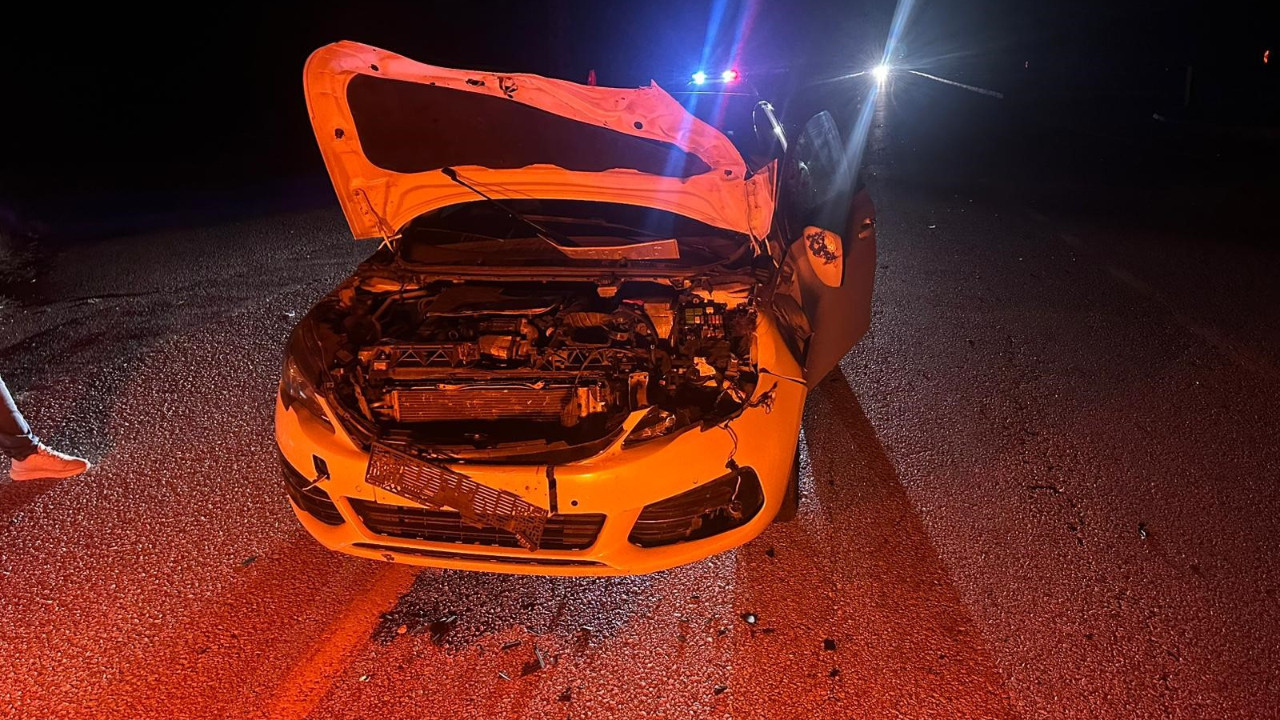 Yola çıkan danaya çarpan otomobildeki 2 kişi yaralandı.