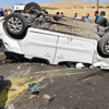 Refüje çarparak takla atan araç ters döndü: Yaralılar var!