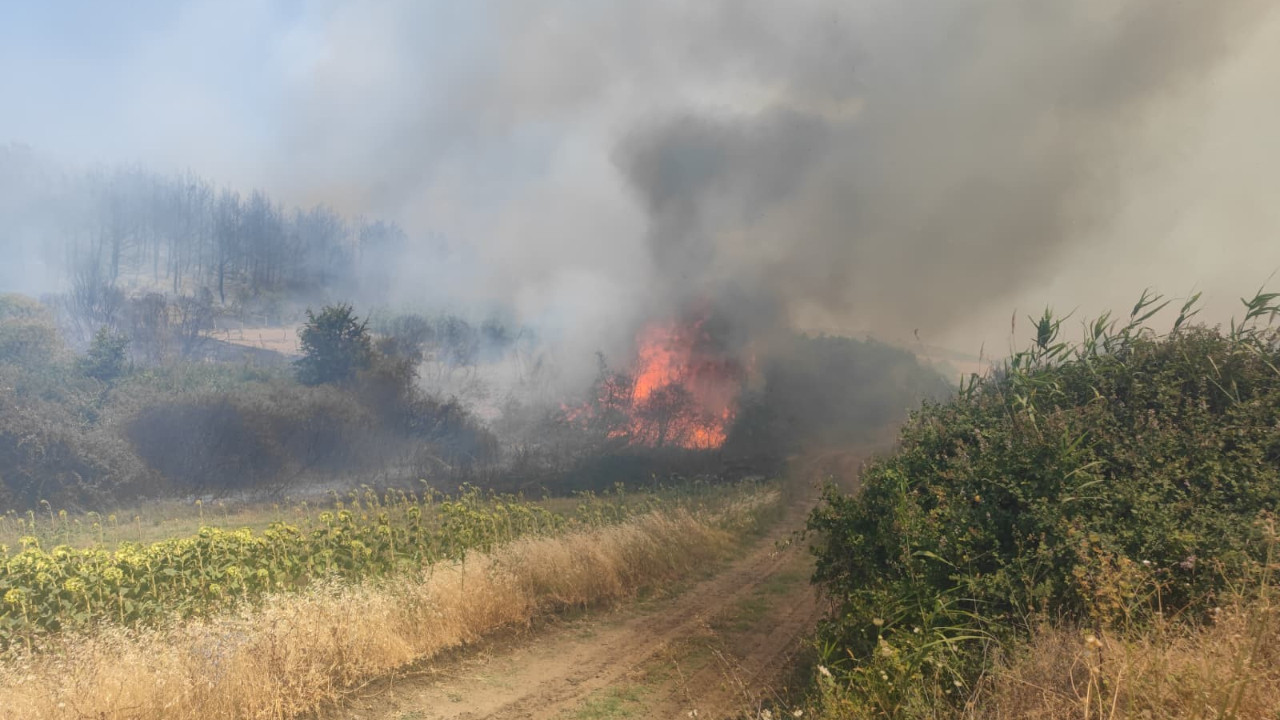 Tekirdağ’ın Şarköy ilçesinde çıkan orman yangını, rüzgarın da etkisiyle büyüyerek tarım arazilerine sıçradı.