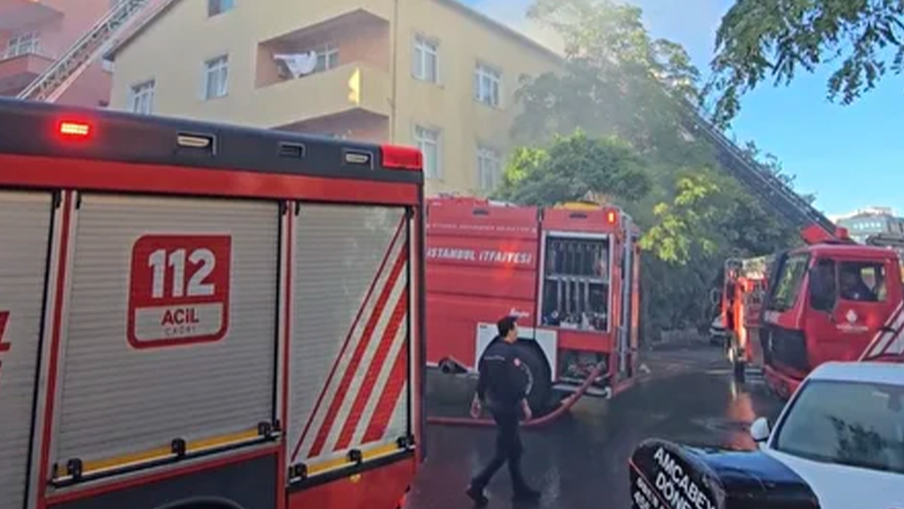 Üsküdar'da 3 katlı bir binanın çatısında yangın meydana geldi.