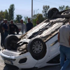 Vatandaş önlem bekliyor! Kaza yapan araç ters döndü!